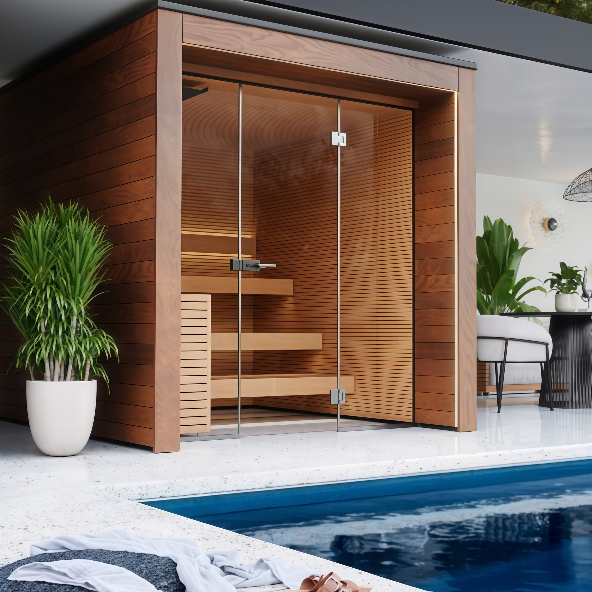 To find the perfect sauna, start by considering your location—whether you want it indoors or outdoors as some saunas are only compatible for indoor use. Next, consider your budget, available space, and the sauna type that suits your needs, whether it's traditional, infrared, or hybrid. Finally, consider the aesthetic of the sauna to ensure it complements your space and style.