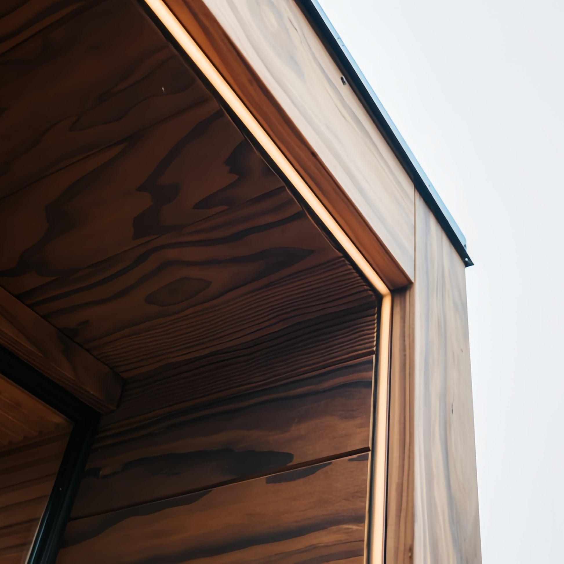 Exterior Wall Material: Dark weather-resistant solid wood panels (Cedar/Hemlock optional)