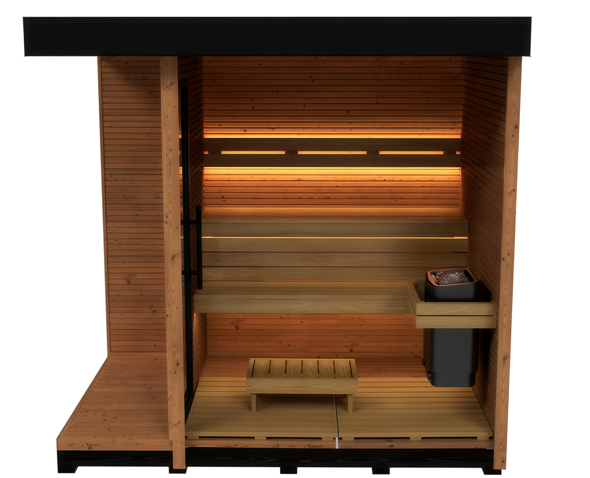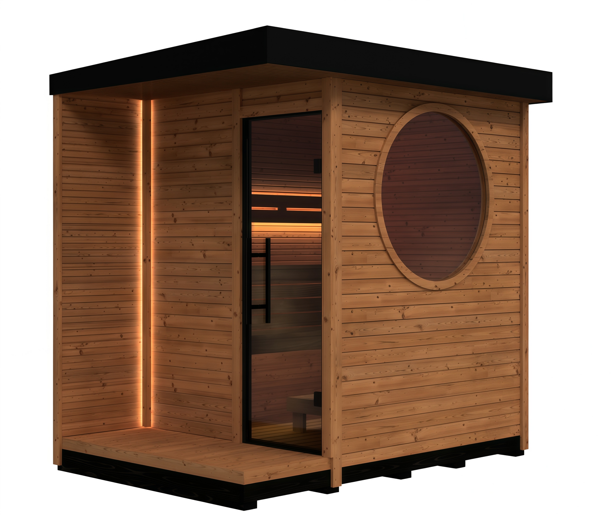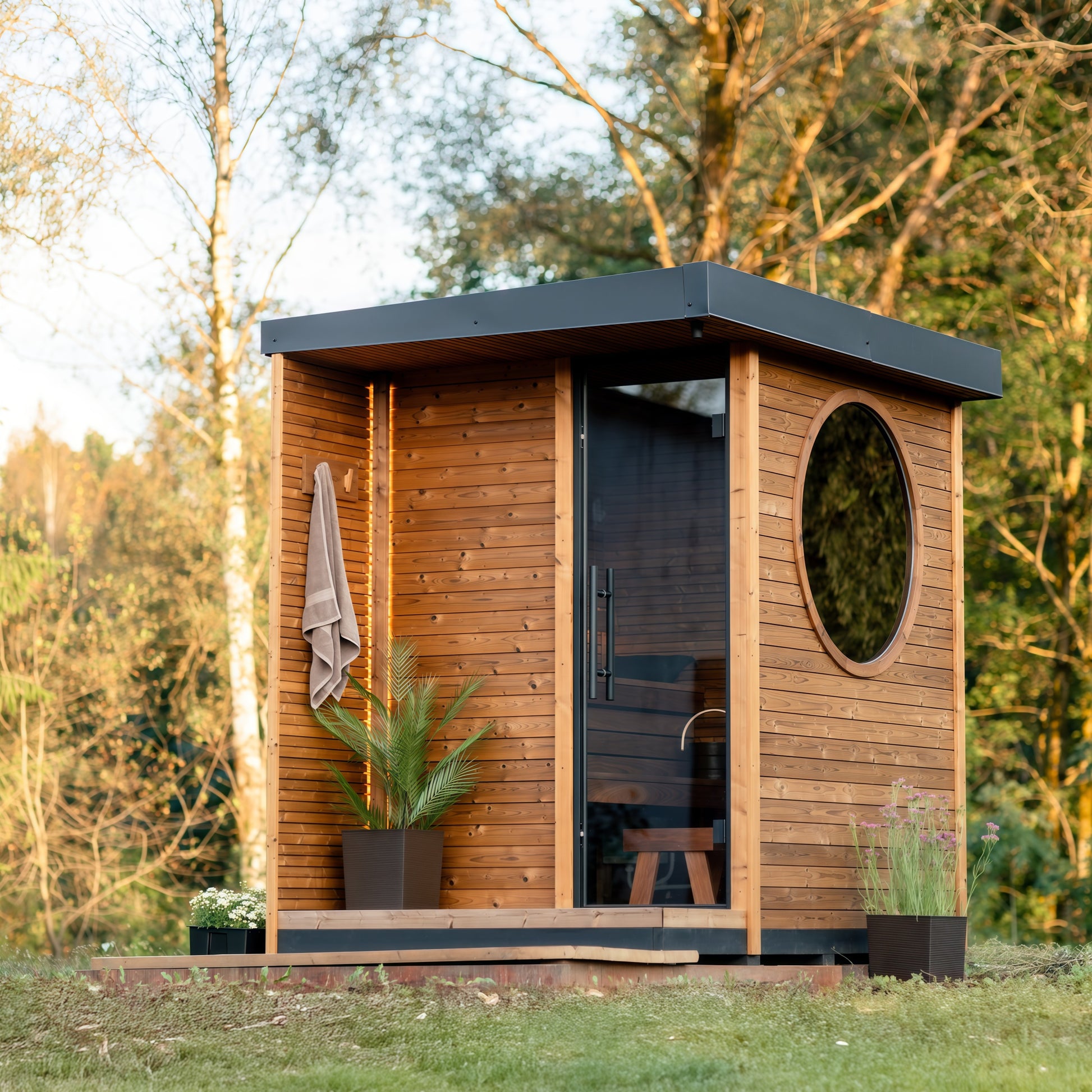 Whether placed in a courtyard, by a lake, or in a mountain setting, this sauna becomes a space connecting people with nature—a modern Zen retreat where thoughts can settle, the body can relax, and inner balance can be regained.